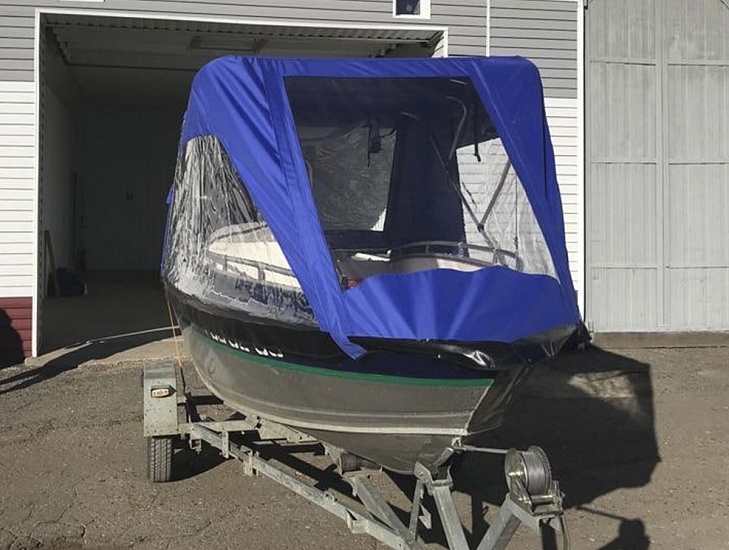 Ходовой тент с панорамным обзором для вашей лодки. Прозрачная передняя дверь, боковые капитанские окна и задняя дверь с окном обеспечивают круговой обзор и доступ свежего воздуха.